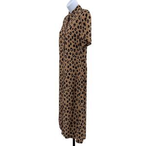 The A New Day Shirtdress in brown is designed for women in size S. This button-up dress features a stylish leopard print, short sleeves, and a collared neckline, making it a chic and versatile addition to your wardrobe.