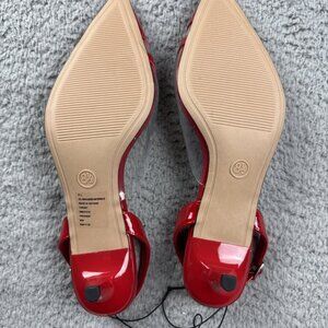 A New Day Shoes Womens Size 8.5 Red Eleanor Heart Kitten Heels Clear Strap Dressy