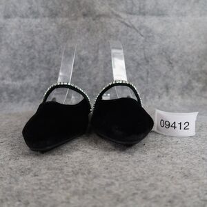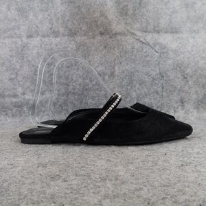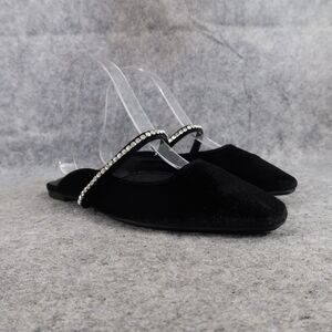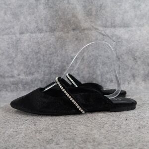 Used A New Day Shoes Women 7 Mules Velvet Slip On Rhinestone Strap Black Fashion Flat