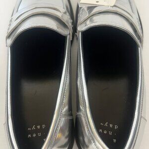 A New Day Silver Jordan Loafers Metallic Finish & Black Sole Womens Size 10 NWT