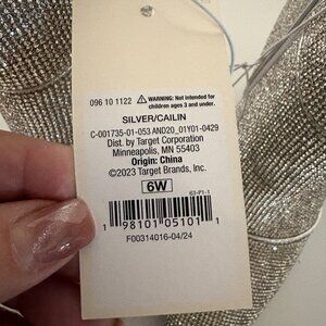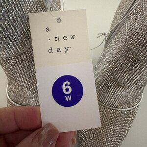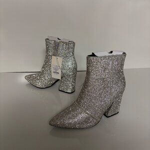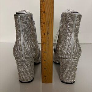 A New Day Silver Rhinestone Ankle Booties Womens Size 6W Chunky Heel Pointed Toe
