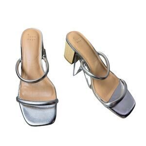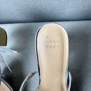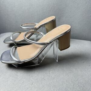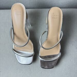 A New Day Silver Sandals Block Heel Womens Size 8