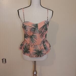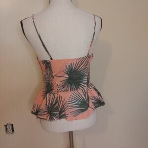 A New Day Size Medium Pink Green Palm Cropped Peplum Summer Beach Vacation Top