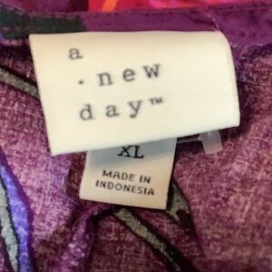 A New Day Size XL Purple and Red Bright Floral V-Neck Blouse. Preloved