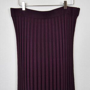 A New Day Skirt Womens Extra Large Burgundy Oxblood Knit Pleated Rolled Hem Midi