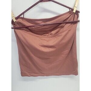 The A New Day Sleeveless Brown Halter Top in size Large is the perfect summer wardrobe essential for women. This stylish tank top is ideal for beach trips or a summer cruise, with a comfortable nylon and cotton blend material. The sleeveless design and halter style give off a casual and trendy vibe, while the brown color adds a touch of warmth to your outfit. Pair this top with your favorite bottoms for a chic and comfortable look this season.