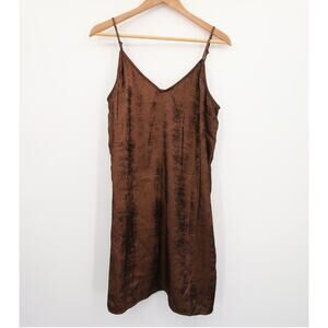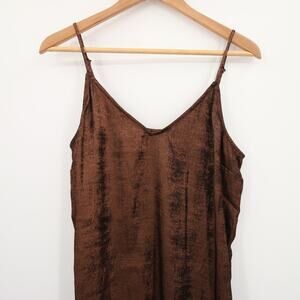 A New Day Slip Dress Copper Bronze Metallic Crushed Velvet VNeck Size L NWT