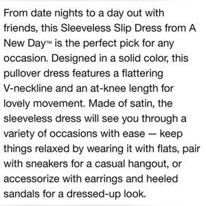 From date nights to a day out with friends, this Sleeveless Slip Dress from A New Day is the perfect pick for any occasion. Designed in a solid color, this pullover dress features a flattering V-neckline and an at-knee length for lovely movement.