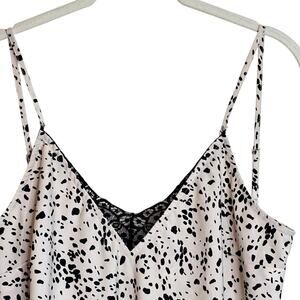 A New Day Slip Dress Women's Size Small Leopard Print Cami Lace Trim Midi Slit