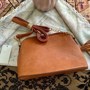 This chic crossbody bag from A New Day features a stylish brown and tan color scheme, perfect for adding a touch of elegance to any outfit. Its medium size makes it ideal for carrying daily essentials, while the adjustable strap ensures comfort and versatility for everyday use.