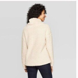 A New Day Small Pullover Sherpa Sweater Cozy Soft Cowl Cream NWT