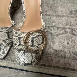 Elevate your style with these A New Day mules, featuring a sophisticated gray and gold color palette. The slip-on design showcases a chic bow detail, adding a touch of elegance to the textured reptilian finish. Perfect for versatile styling, these mules offer a blend of comfort and fashion.