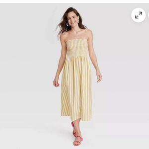 A New Day Strapless Smocked Tube Sundress Yellow White Stripe Small