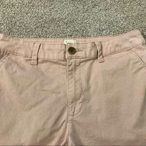 A New Day chino shorts in size 4. Light blush pink, 2 front and 2 back pockets with zip & button front closure. Stretch fabric is cotton/ spandex blend. Approximate measurements are in photos. Good pre-owned condition from smoke free and pet free home.