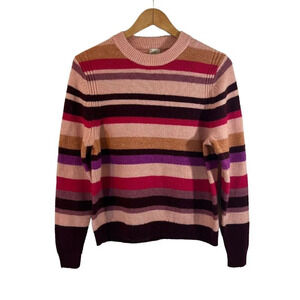 A New Day Striped Crewneck Sweater Small Pink Purple Stretch Knit Pullover Top