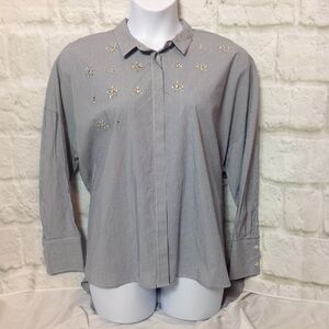 A New Day Striped Rhinestone Embellished Button Up Top.