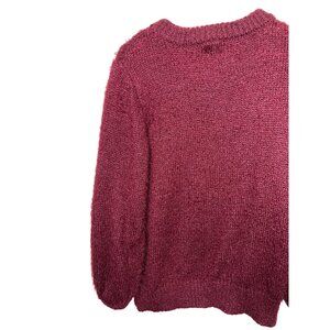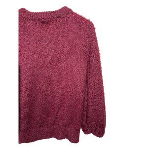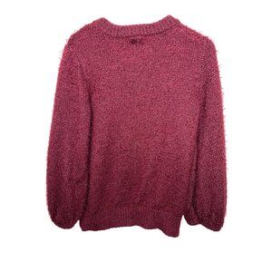 This A New Day Sweater in a bold red burgundy shade is a stylish addition to any woman's wardrobe. Its puffed long sleeves and soft polyester knit make it a cozy and fashionable choice in size small.