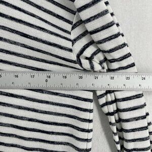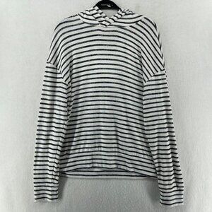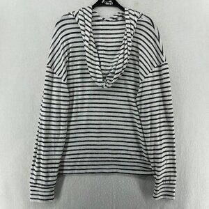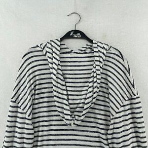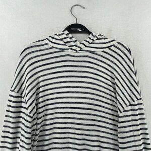 A New Day Sweater Women's Sz L White Striped Hooded Drop Shoulder Sleeve Pullover