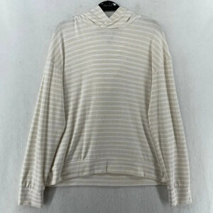 A New Day Sweatshirt Womens Sz L Oatmeal Beige Striped Stretch Pullover Hoodie