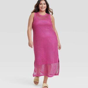 A New Day Swim Cover Up Maxi Long Dress Metallic Mesh Sleeveless Pink Size XL