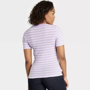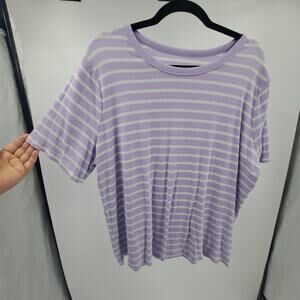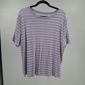 A New Day T-Shirt Plus 2X Striped Short Sleeve Ribbed Crew Neck Purple White