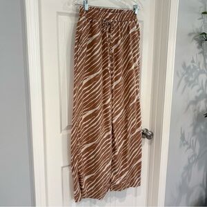 A New Day Tan Brown Cream Zebra Print Wide Legged Linen Blend Pants Women Size XS Pockets Drawstring