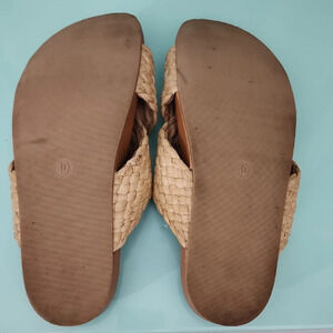 Elevate your summer style with these chic sandals from A New Day, featuring a sophisticated tan hue complemented by sparkling silver accents. The woven straps form a stylish 'X' across the foot, adding a touch of elegance to your casual ensemble. Perfect for warm-weather outings, these sandals offer both comfort and flair.