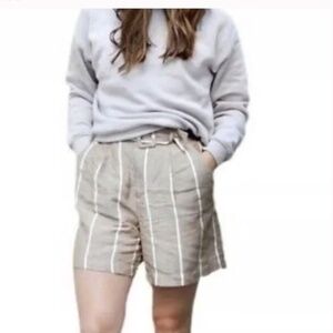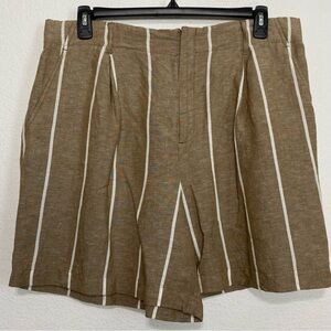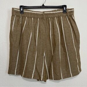 A New Day Tan/White Striped Linen Blend Belt Loops High Rise Short Plus Size XXL