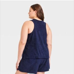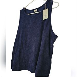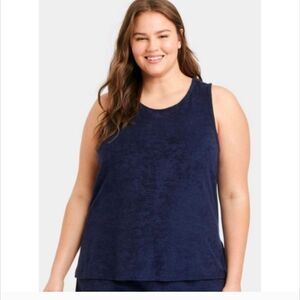 A New Day Tank 3X Navy Blue Terry Plus Top Cut in Sleeves Athleisure Basic