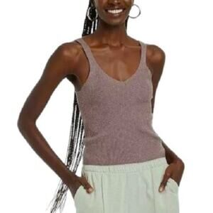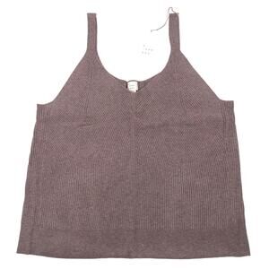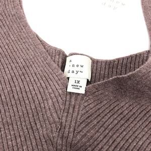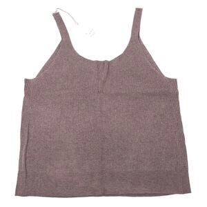 A New Day Tank Top 1X Ribbed Knit Fine Gauge Sweater Tank Stretch V Neck Brown