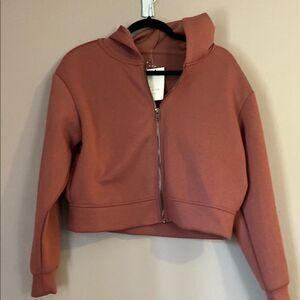 A New Day Target Double Knit Full Zip Hoodie Sweatshirt Rust Cropped Small