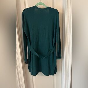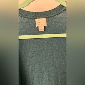 Chic teal knit sweater. Ideal for layering. Shown paired with a shirt that I have listed separately for sale.