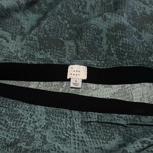 The A New Day Snake Print Skirt in size Large is a trendy and versatile piece perfect for various occasions. Featuring a stylish snake print pattern, this polyester skirt is easy to care for with its machine washable fabric. The pull-on closure and elastic waist make it comfortable and convenient to wear for casual outings, workwear, or even a party. This A-line skirt in a green color is ideal for the summer, fall, and spring seasons, adding a touch of animal print flair to your wardrobe.