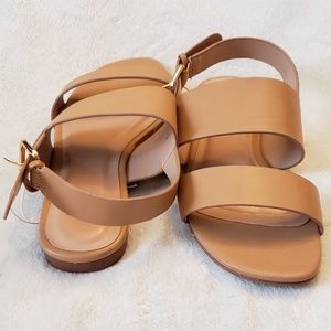 Every woman should have a pair of strappy sandals in their wardrobe, for warm-weather outings that require a bit more support and stability. These sandals will do just that, with a back buckle and heel strap, and two large straps over the foot. Clean lines and a minimal heel on these open-toe sandals make them always on trend, and always ready to go. ▪️ Upper Shoe Material: 100% Polyurethane ▪️ Heel: Approximately 0.5 inches No heel ▪️ Condition: NEW - Excellent Condition