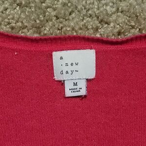 A New Day V-Neck Sweater Womens Hot Pink Size M Long Sleeve Ribbed Knit Pullover