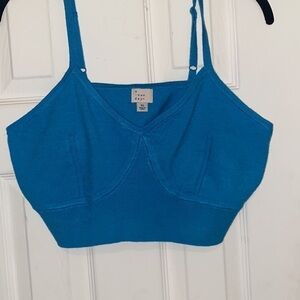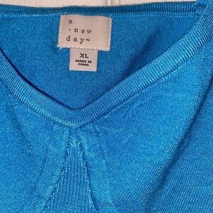 A New Day V-Neck Bralette Sweater in a vibrant blue size XL new with tags features a flattering V-neckline, front darts and a regular fit silhouette to give it a sleek look. The lightweight fabric offers more comfortable wear, while adjustable straps help you find the right fit. You can sport this bralette sweater on it own or layer with an open front cardigan same color for a chic look