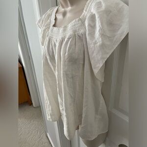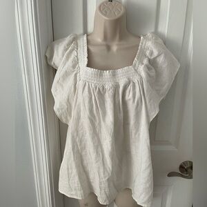 A New Day White Smocked Square Neck Flutter Sleeves Top XSmall New