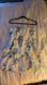 Elegant white dress with blue floral print. Features tiered layers and spaghetti straps. Perfect for casual outings.