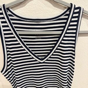 A New Day White and Blue Sleeveless V-Neck Bodycon Maxi Dress