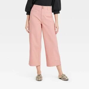 Women's High-Rise Cropped Wide Leg Pants - A New Day Coral Pink 12 Relaxed Fit
