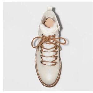 A New Day Winter Boots Leighton Lace-up Memory Foam Soft Fur Lining Off-White