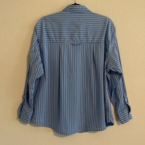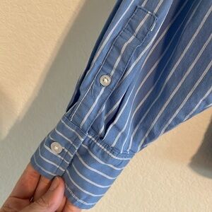 A New Day Women Blue & White Striped Small Button Down Shirt Cotton Contemporary