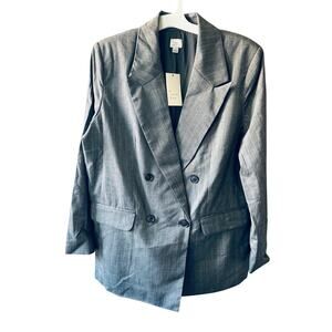 A New Day Women Double Breasted Blazer Gray Pinstripe Blazer Size Large NWT Career Wear Structured Vintage Style Trendy Retro Indie