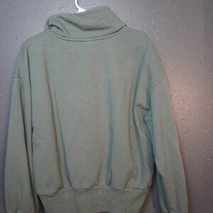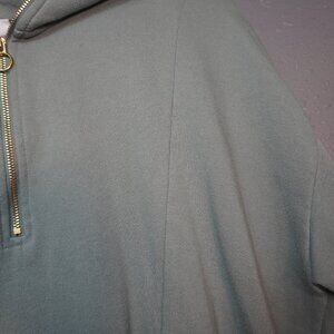 A New Day Women Green Quarter Zip Sweatshirt Solid Fleece Soft Size Large