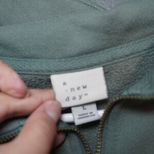 A New Day Women Green Quarter Zip Sweatshirt Solid Fleece Soft Size Large. This Sweater is well loved with signs of wear such as color fade and tiny peeling but is still comfy and decent condition. This pullover would be a great addition to your lounge fall winter wear. If you have any questions please feel free to message me and I will get back to you as soon as possible.