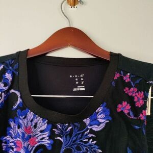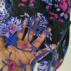A New Day Women M Floral Embroidered Sheer Black Lined Sleeveless Boho Y2K Top
