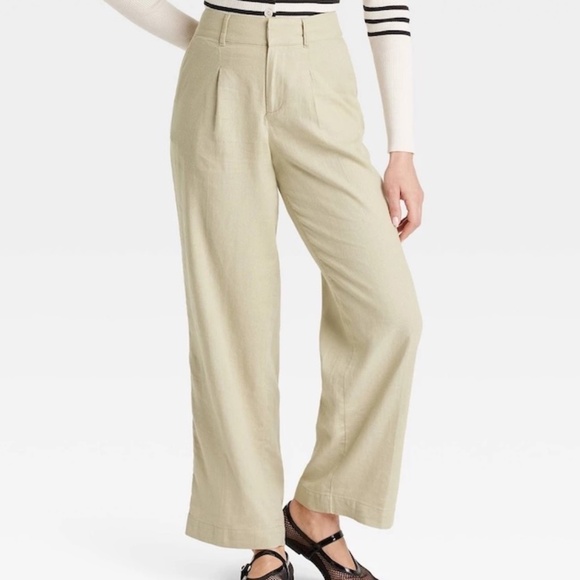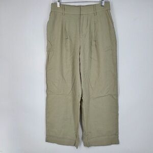 A New Day Womens 8 SHORT Trouser Pants Linen Blend Green Pleated Straight Leg