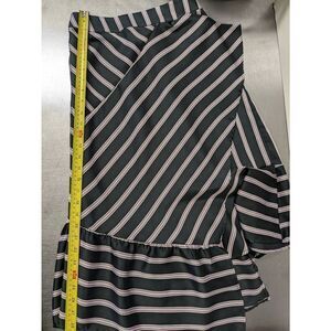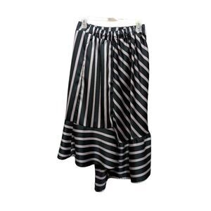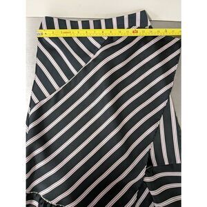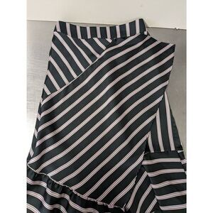 A New Day Women's Asymmetrical Flowing Navy Blue Pinks ND White Striped Skirt with back Elastic Waistband Size Small Pre-owned in good condition