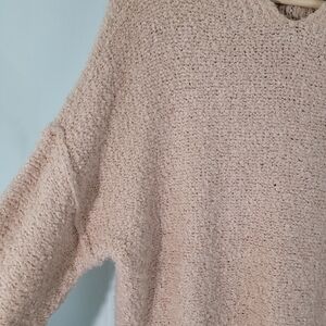 A New Day Women's Baby Pink V-neck Hooded Side Slit Boucle Sweater Size Medium