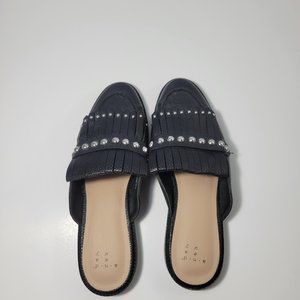 A New Day Women's Black Karoline Studded Fringe Backless Loafer Mules Size 6